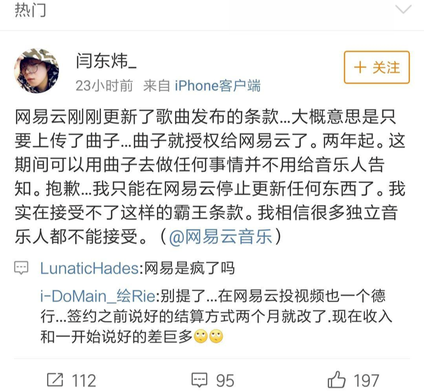 之前就有爆出,網易雲與獨立音樂人簽訂的合約實為**“霸王條約”**。