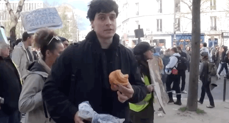 “謝謝哥們的視頻!你讓最近水深火熱的法國人都笑了!可頌和遊行萬歲!”