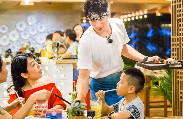 看明星開餐館,做服務員。