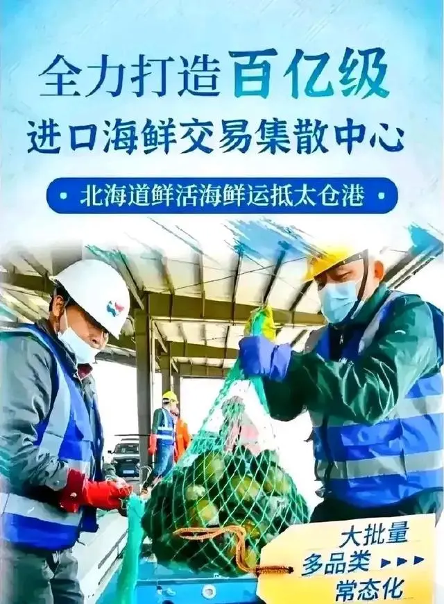 蘇州全力打造百億級進口海鮮交易集散中心,日本北海道鮮活海鮮運抵太倉港。