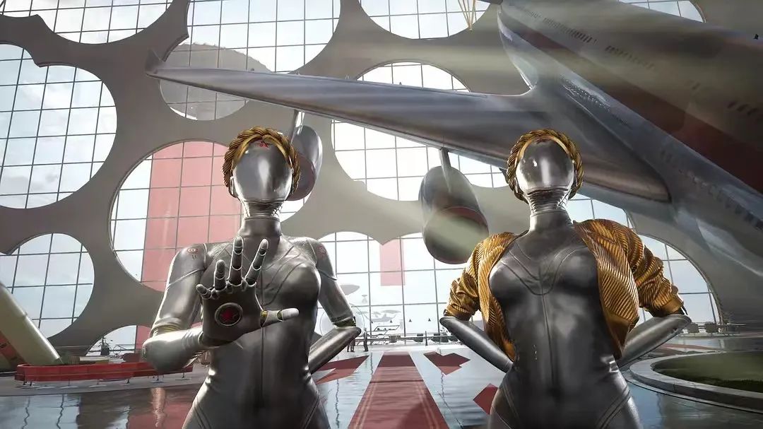 時間較近的案例,有俄羅斯開發商Mundfish的處女作《原子之心》。它靠一台滿嘴性感騷話的智能冰箱和一對身姿曼妙的機器人姐妹花在國內撩撥起了預想之外的熱度,而當人們真正進入遊戲世界,又會驚歎於它在背景構架和場景美術層面獨樹一幟的“原子朋克”美學體驗。