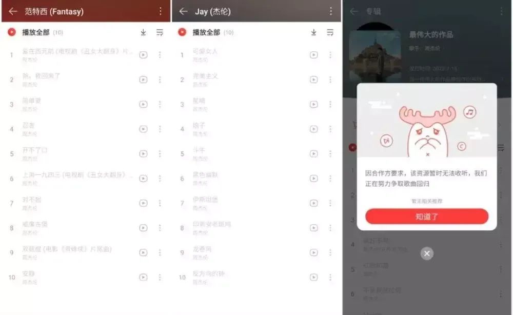 此後,網易雲音樂雖然多番致歉承認錯誤,表示“對此豬頭的不能再豬頭的行為,我們表示深刻反省和最深的歉意”,但卻已經無法挽回失去的“周杰倫”。