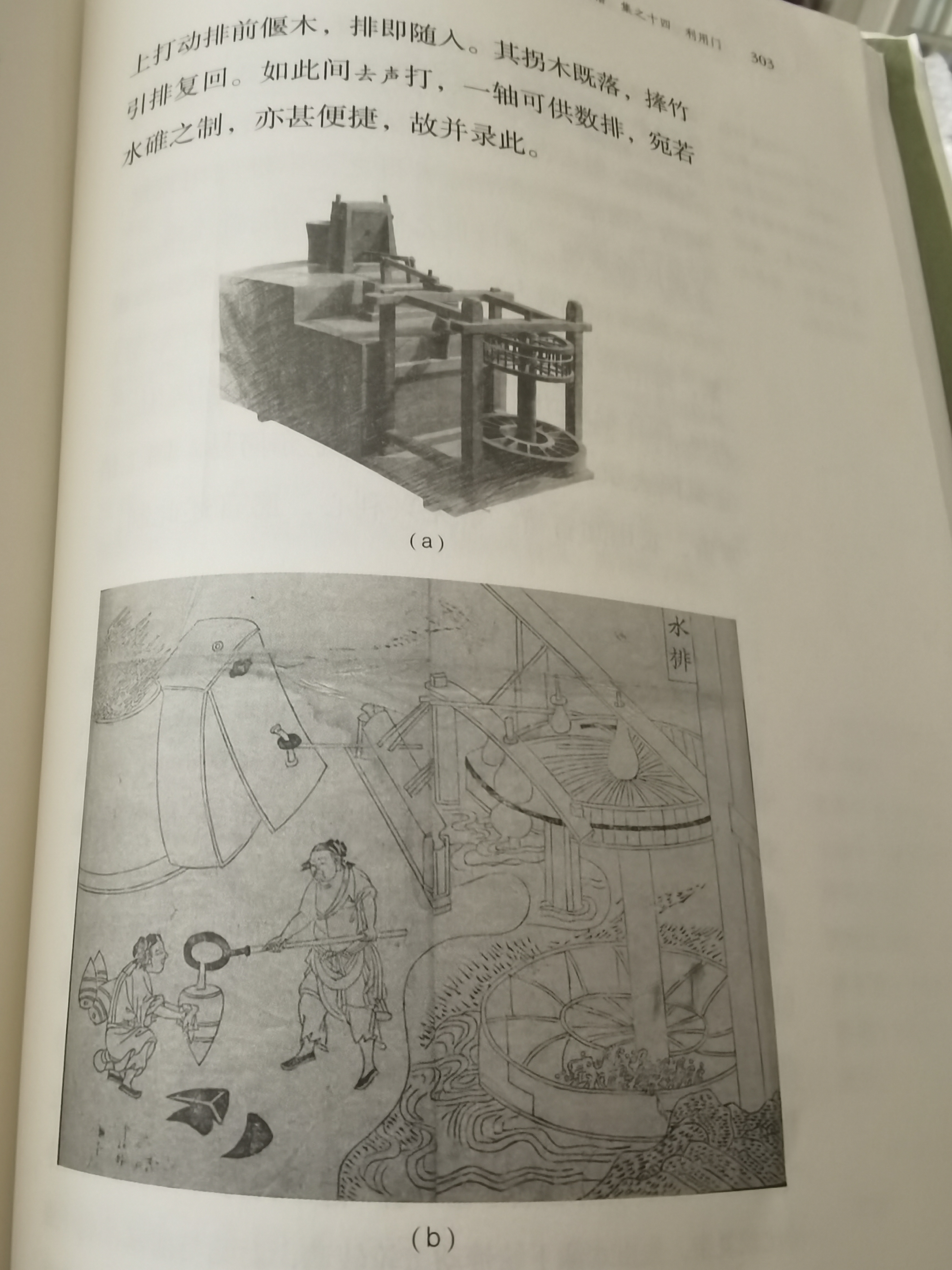 王禎在他的《農書》(1303年版本)中詳細介紹了這種水利風箱原理的示意圖,並且詳細介紹了其發明的歷史。有興趣的朋友可以看一看《農書》集之十四,利用門的內容。