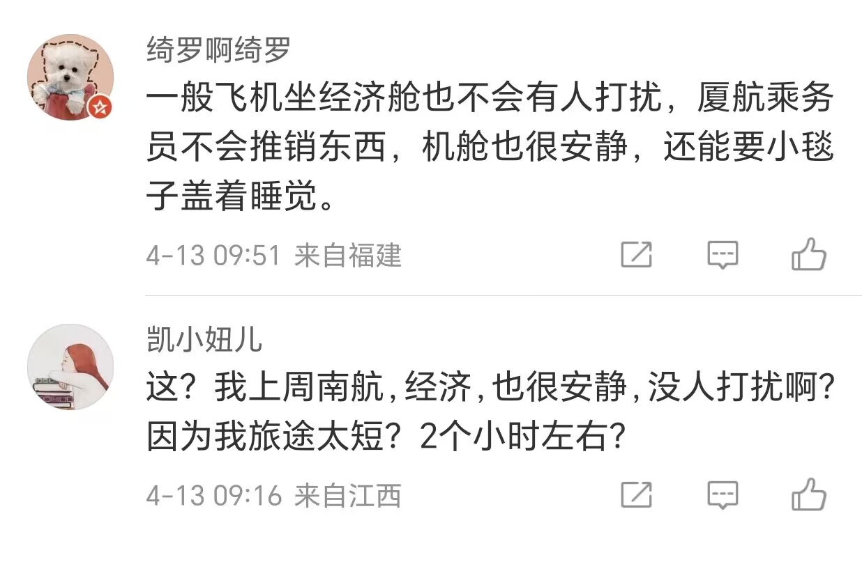但也有網友表示,其他航空公司的經濟艙也沒有這麼吵鬧,憑什麼這裏就得忍耐推銷?