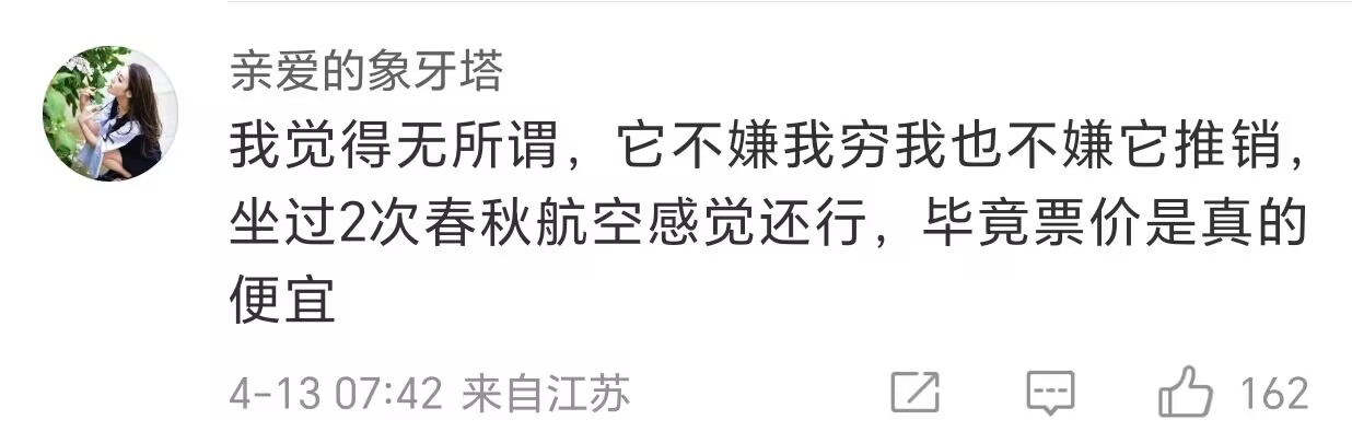 微博上做過春秋航班的網友們的感想