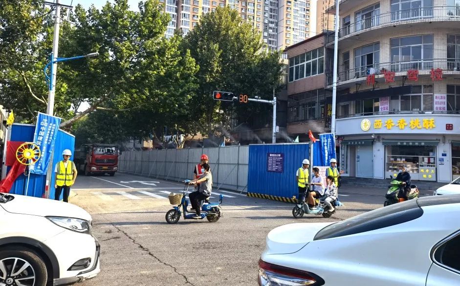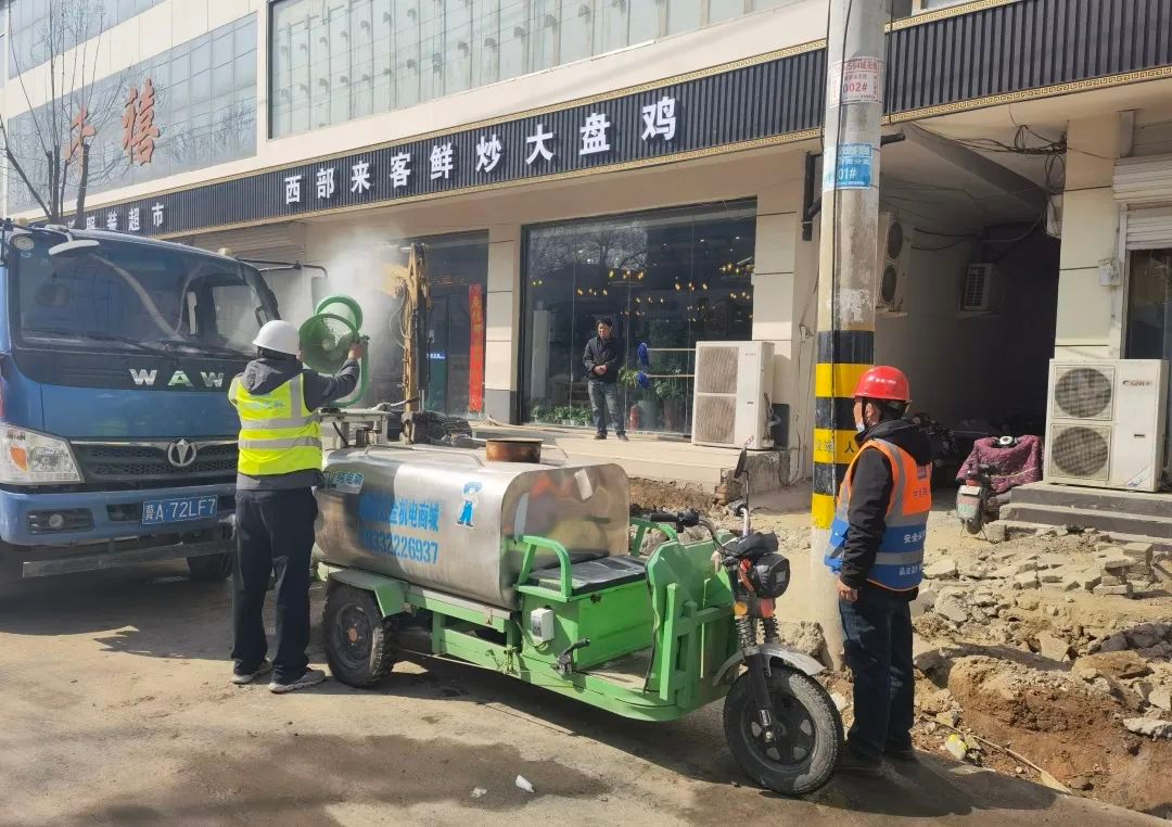 進場伊始,項目團隊開展前置調研,發現通府街作為贊皇縣最為繁華的主幹路之一,道路兩側的商户高達近200家,且道路兩端及中間橫穿道路車輛流量大,交通情況複雜,如何做好道路兩側商户的安撫、解釋工作,在不影響屬地交通的情況下快速完成施工任務成為了項目團隊面臨的第一個大難題。