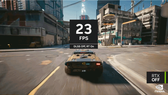 比如説,在測試首發搭載 DLSS 3 的實驗遊戲賽博朋克 2077 的時候效果就很明顯。