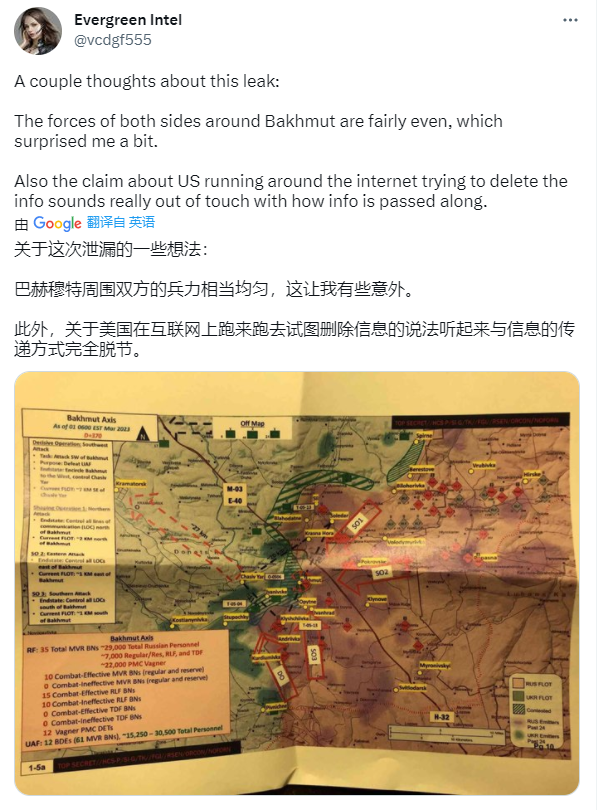 大部分絕密文件都和持續了一年多的俄烏衝突有關,內含巴赫穆特等熱點地區的地圖、西方國家向烏克蘭運送軍火的時間表、烏克蘭防空與火箭炮系統的詳細信息等。