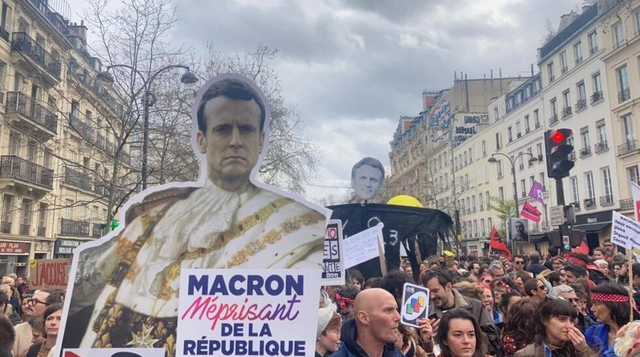 一石激起千層浪。馬克龍的養老金改革迅速激發起左右兩端的激烈抗議。無論是勒龐還是梅朗雄都積極反對這一政策,政府與工會的談判也無果而終。更為糟糕的是,馬克龍所領導的議會派系在議會中並不佔據相對多數。這導致政府提交的議案很有可能會被議會否決。為了避免這種情況下,直到3月16日,馬克龍依舊試圖通過朝野談判的方式確保議案所需要的票數。