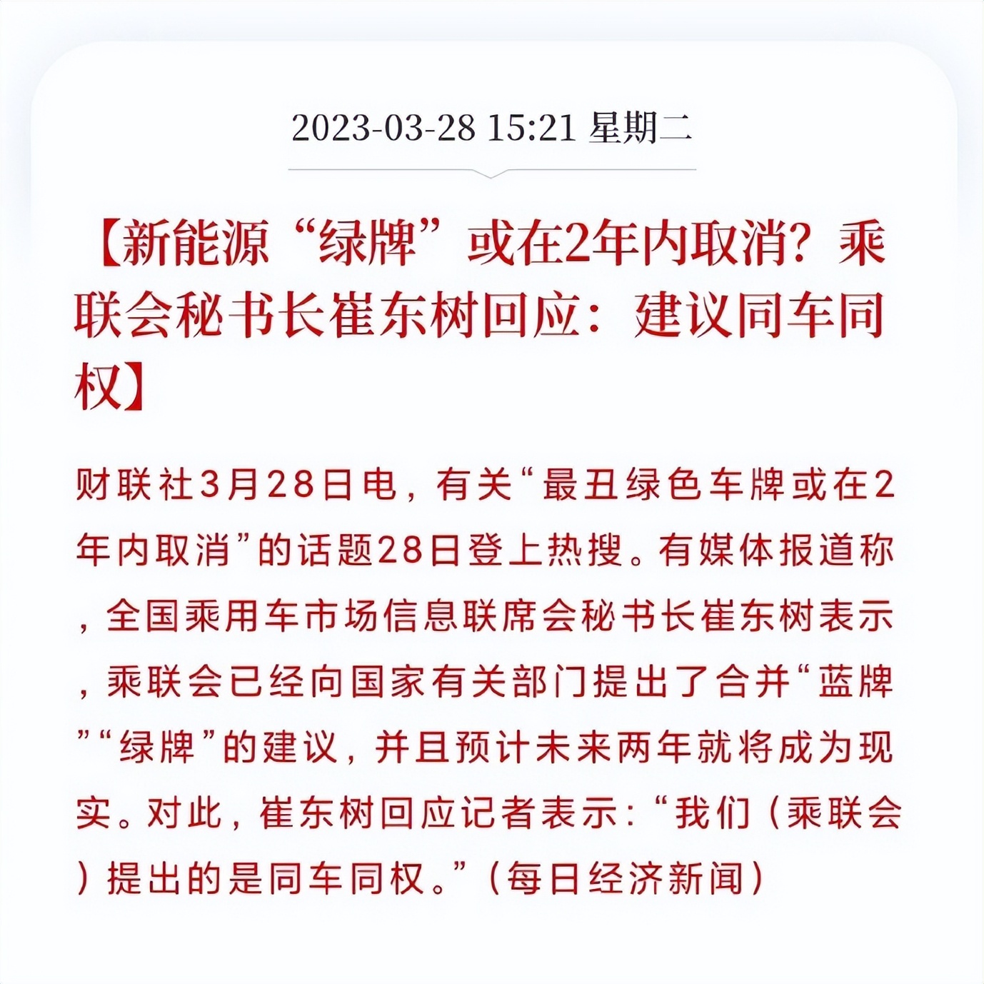 綠牌實行以來,新能源與燃油車享有不平等路權,早就被廣大燃油車主詬病,而這種不平等的路權,只是短期的產業支持政策,不可能成為常態,迴歸同車同權只是時間問題。