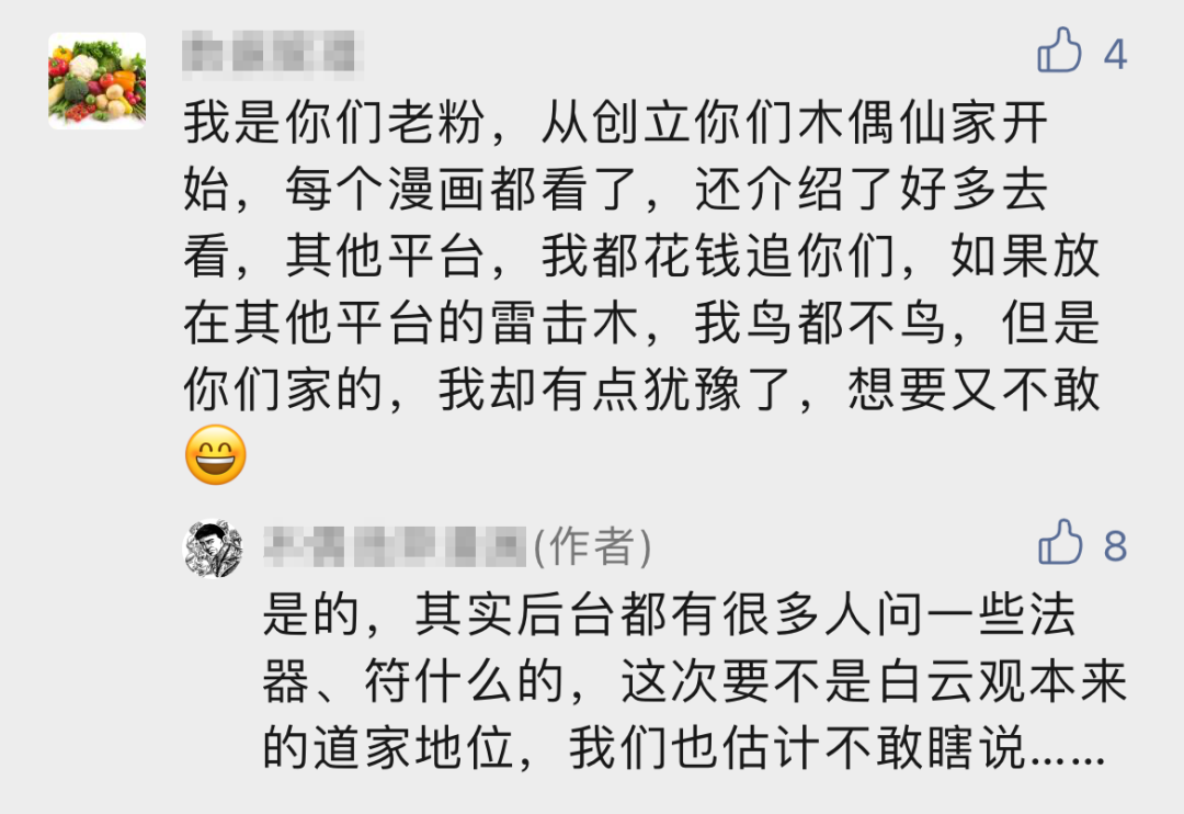 所以即便作品受到影響,微信公眾號和粉絲羣仍在發揮作用。作品下架後,官方計劃了線下活動,當貼吧網友添加微信客服後瞭解到,活動涉及白雲觀參觀、解讀、和道長一同用餐,標價999元一位。今年3月,木偶漫畫還在宣傳自己合作打造的中式恐怖遊戲《轉厝》。
