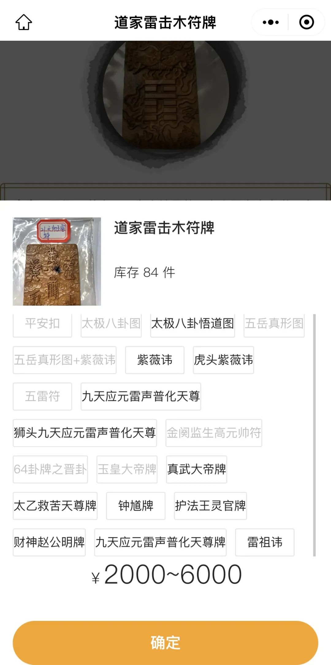 此外,今年1月23日,木偶漫畫工作室的公眾號發佈了一篇文章,表示在“全真第一叢林”北京白雲觀結識了一位張道長,不僅親繪符籙,還在聊天中提供了稀有的雷擊木符牌供粉絲結緣。粉絲可進入小程序的隱藏鏈接購買,鏈接中各商品價格兩千元至萬元不等,到目前為止不少已經售罄/下架。