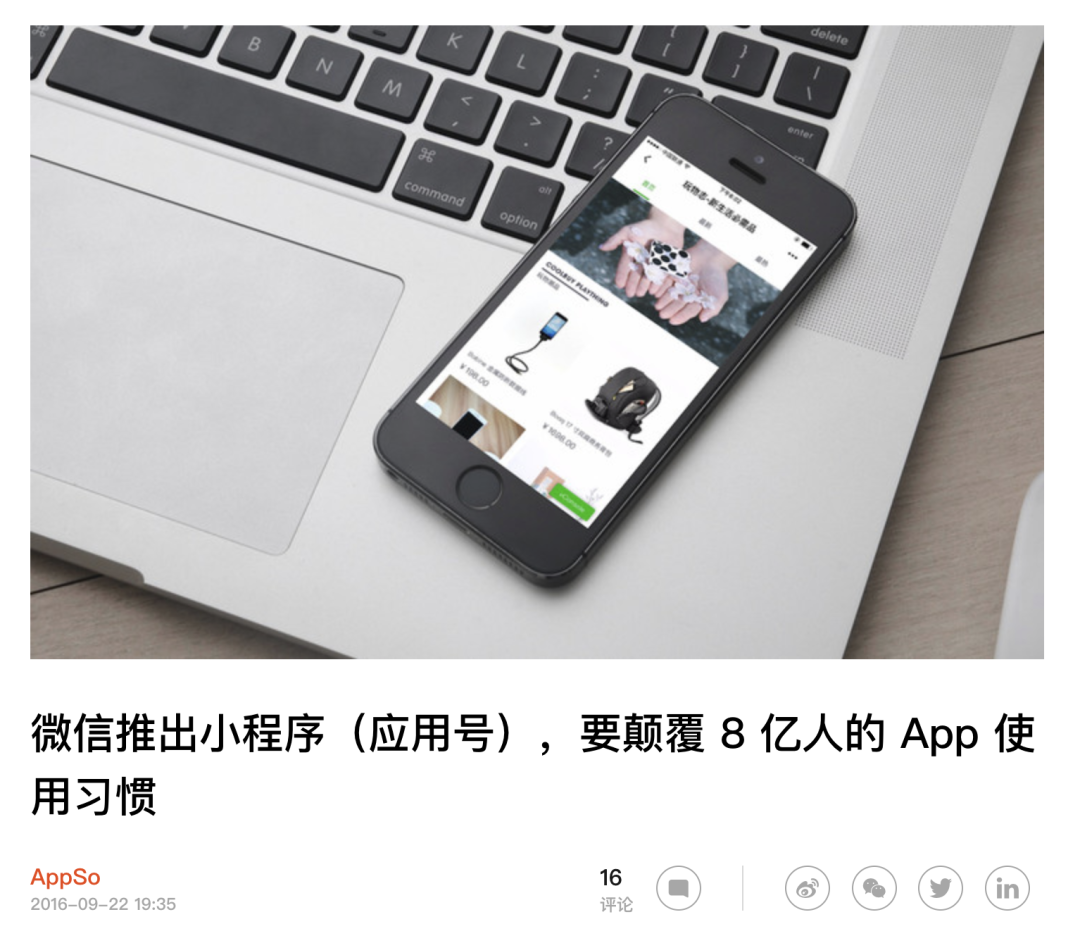 AppSo ——微信推出小程序( 應用號 ),要顛覆 8 億人的 App 使用習慣