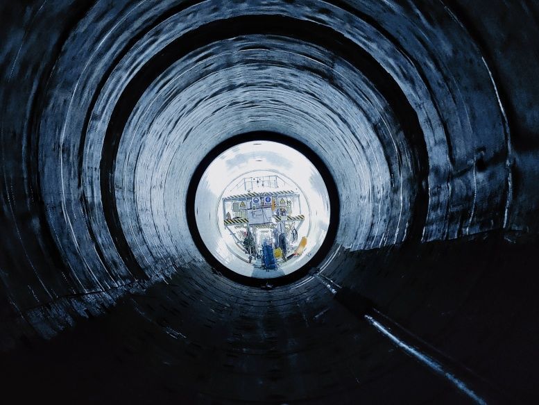 作為國家重大水利工程、粵港澳大灣區重要基礎設施項目,珠江三角洲水資源配置工程線路全長113.2公里,五公司負責施工的土建A5標主要包括2個超深工作井和總長約5.6公里的雙線輸水隧洞,此次內襯鋼管安裝完成的區間為SD08#-SD09#區間(雙線),總長2315米,安裝鋼管384節,最小轉彎半徑394米。