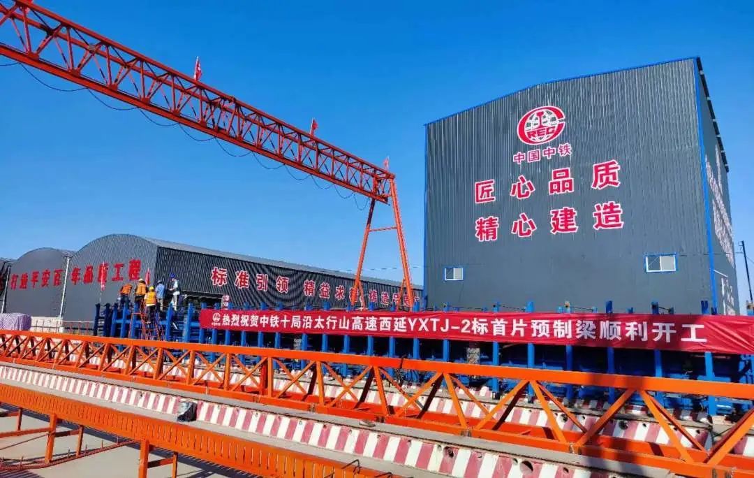 沿太行山高速公路西延項目是河南省高速公路“13445工程”濟源境內的四條在建高速之一,項目全長33.96公里,採用雙向四車道標準建設,設計速度為100公里/小時。由二公司承建的沿太行山西延高速2標項目正線長度為15.92公里,主要工程涵蓋主線路基8495.8延米,主線橋樑5338.6米,隧道2088.6延米,全線橋樑25座,渡槽3座,涵洞及通道32座,預製箱梁84片,預製T梁1412片,橋隧比佔標段全線47%。其中,五指河大橋全長1268米,需架設30米T梁230片、40米T梁150片。本次架設的T梁為五指河特大橋左幅1-2 T梁,梁體長29.521米、寬1.7米、高2米、重達75噸。