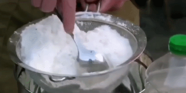 那假如守衞看上了這包麪粉,沒收回家準備做餅,又會發生什麼呢?紀錄片裏的專家還真就拿炸藥麪粉混合物做了一個煎餅。他在炸藥麪粉里加了牛奶、黃油和雞蛋,揉成麪糰,放在火上煎了起來。