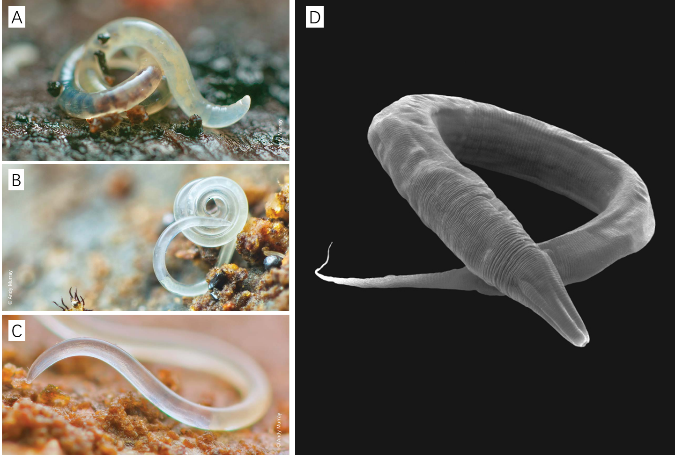圖1 土壤線蟲(圖片來源:A-C,FAO, 2020; D, 《環球科學》https://www.cdstm.cn/gallery/hycx/qyzx/201812/t20181208_899301.html)