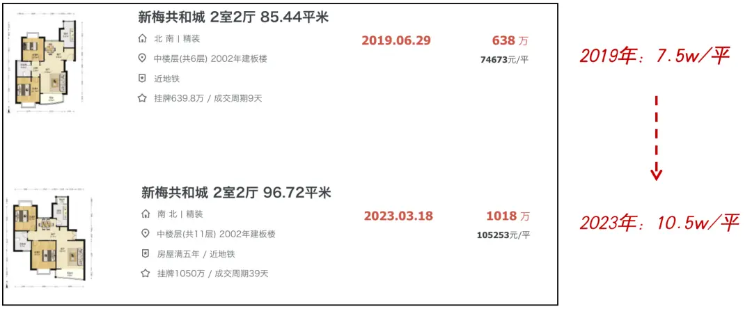 從2019年的約7.5w/平漲到了現在的10.5w/平,漲幅達到40%