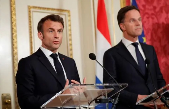 4月12日,法國總統馬克龍訪問荷蘭,繼續強調歐洲的戰略自主,圖為馬克龍和荷蘭首相馬克·呂特