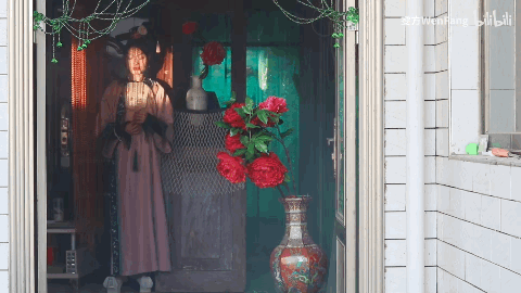 在老家,他用門簾和花瓶當作道具,原生態的場景佈置,可每一個細節都傳達出了晚清閨閣女人的收斂與綻放。