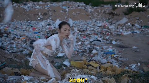 為了精準的呈現拍攝理念,雯方選擇了一片巨大的垃圾場作為場地,其中滿是枯葉、廢棄塑料、發黴的食物。