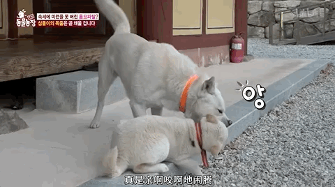 路上,心石與幾隻不同的小狗進行了親密交流。