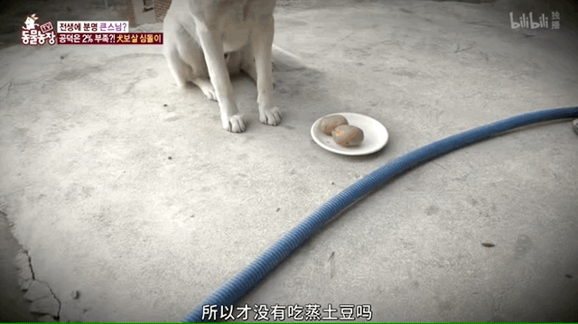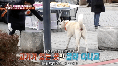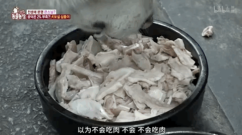 店員去店裏端出一碗肉,它便大口吃了起來。