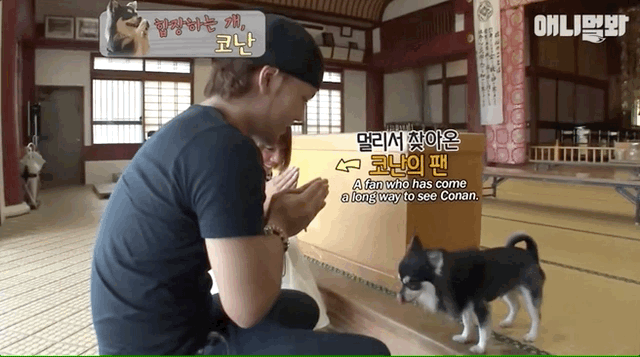 碰到來寺廟的遊客,小狗還會跟他們互拜。