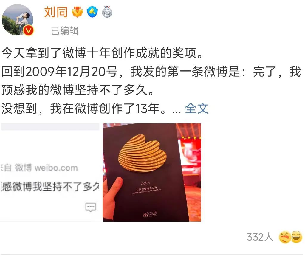 2009年,@劉同 拿到一個微博的內測名額,成為了微博最早的一批用户。十餘年後,他的title一個比一個響亮,比如光線影業副總裁、青年作家……但在微博上,他最大的標籤還是擁有超過2000萬粉絲的元老級大V。