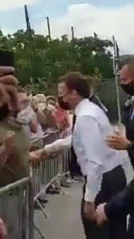 2021年,日常視察,原本是滿面笑容地和民眾握手,結果人羣裏突然冒出個人伸手給了他一個大嘴巴。