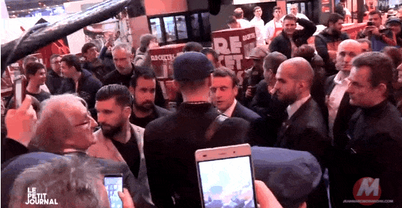 那友好,那氣氛,和法國人民的敲打腳踢一對比,馬克龍真是感受到了久違的尊重。