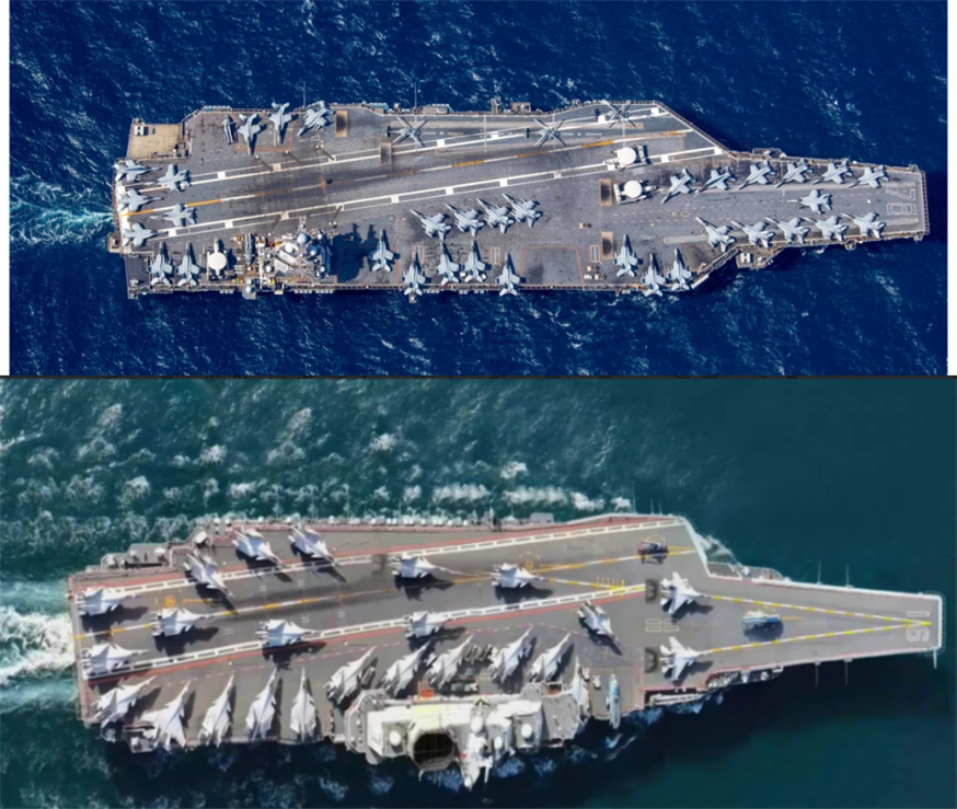 ▲中美兩國航母甲板對比