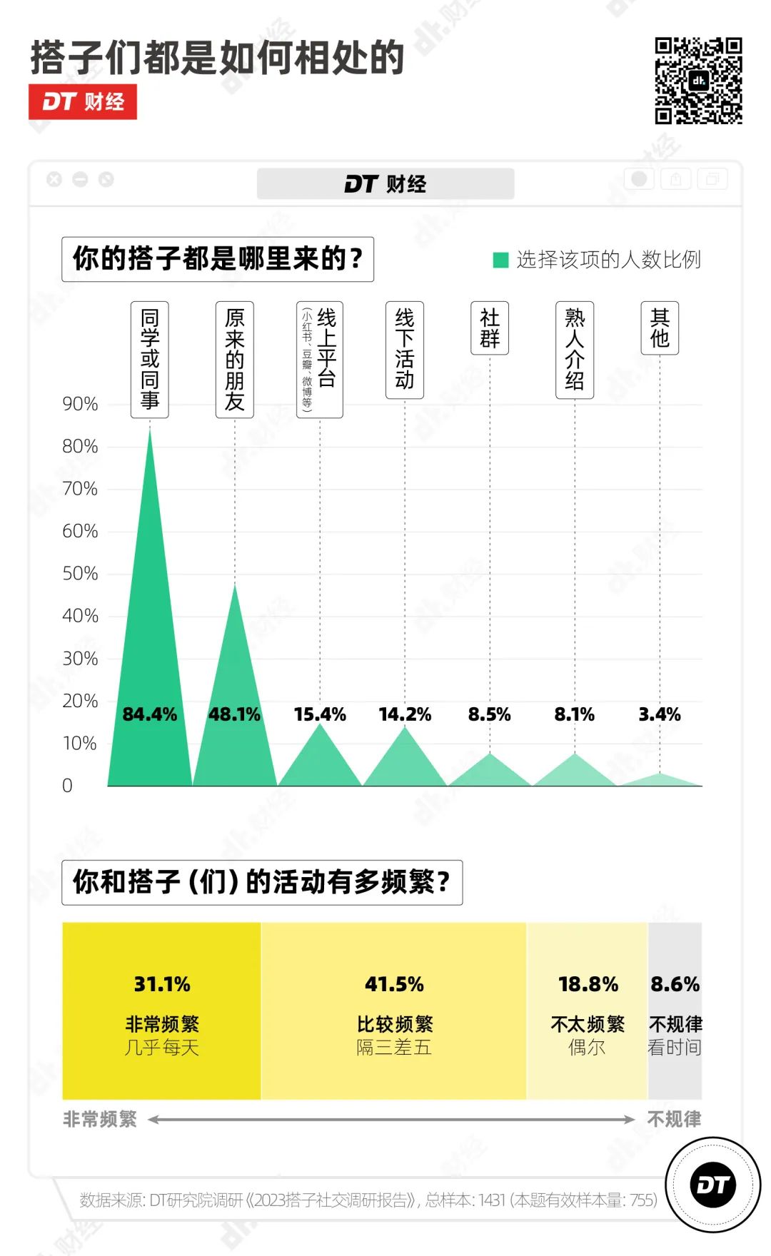 針對這些問題,DT財經和DT研究院聯合發起了一項“搭子調研”,收集並分析了1431份問卷結果,發佈《2023搭子社交小報告》,下面是我們的發現: