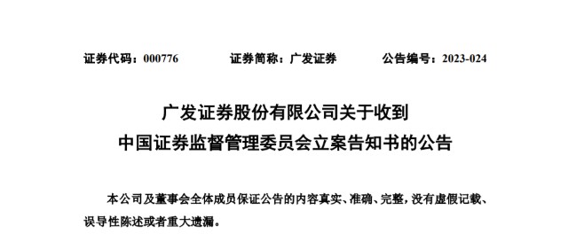 燈塔媒介4月18日訊,廣發證券股份有限公司(以下簡稱“廣發證券”,000776)4月17日晚間公告稱,公司於 2023 年 4 月 17 日收到中國證監會的《立案告知書》(證監立案字0382023005號),因公司在美尚生態景觀股份有限公司(以下簡稱“*ST美尚”) 2018 年非公開發行股票的保薦業務中未勤勉盡責,涉嫌違法,根據有關法律法規,證監會決定對公司立案。