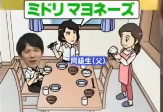 midori,給我盛飯。modori,給我那個蛋黃醬。