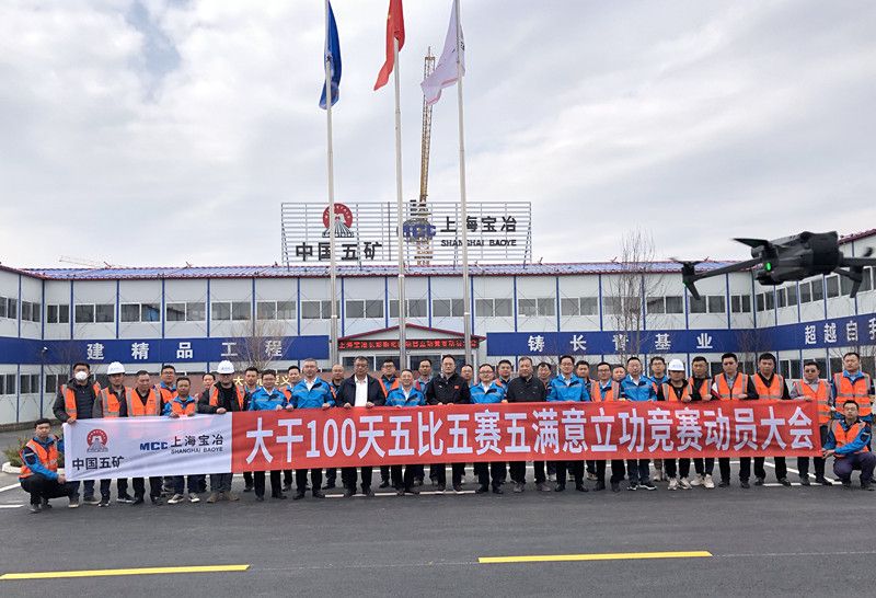 **中國基建報訊(李心語 報道)**4月17日下午,上海寶冶長春市影視文創孵化園區二期建設項目組織召開“五比五賽五滿意”暨“大幹100天確保商場地下室封頂、雪場七層結構完成”立功競賽誓師動員會。上海寶冶工會主席陽剛、長春天富商業管理有限公司法定代表人孫文博、萬達商業規劃研究院有限公司工程副總經理李國偉、上海寶冶黨羣工作部部長助理毛一新,上海寶冶長春分公司黨總支副書記、工會主席張典、長春分公司總工程師張華山出席活動,會議由張典主持。