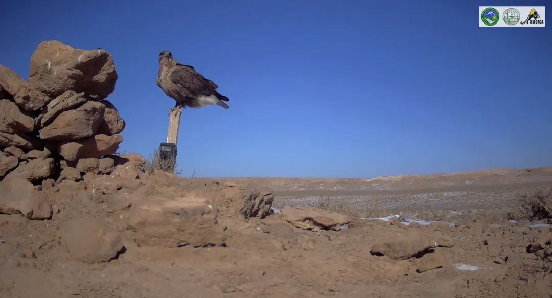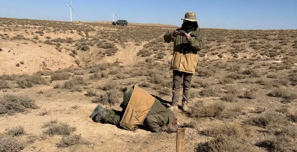 荒漠裏放相機,得先釘個綁相機用的木樁子,但是吧,這根木樁在之後的歲月裏就會成為方圓幾里內最突兀的制高點。因此我們所有的木樁子上都沾滿了厚厚的鳥屎,我們的相機也在對拍機位的樁子上拍到過漠䳭、縱紋腹小鴞、伯勞、紅隼甚至大鵟。
