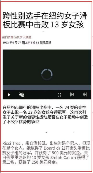 其實,所謂的跨性別者在體育領域佔盡女人便宜,不只是加拿大特有,在歐美各國那都是極為常見的現象。