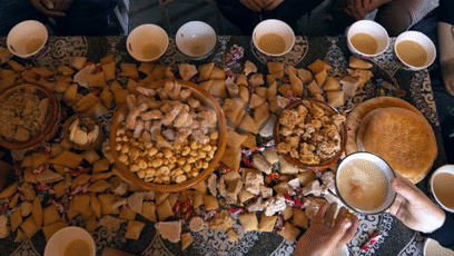 廚房裏、餐桌上都體現着大家對肉孜節的期盼與喜悦。