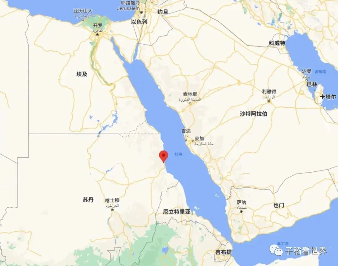 看看蘇丹港在紅海的位置,直接扼守紅海的黃金水道。而且對面就是沙特阿拉伯的經濟重鎮吉達。尤其是麥加,那可是全世界伊斯蘭魂牽夢繞的聖地。