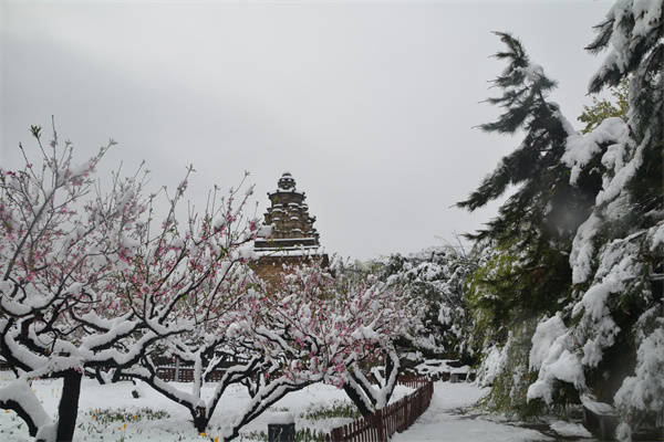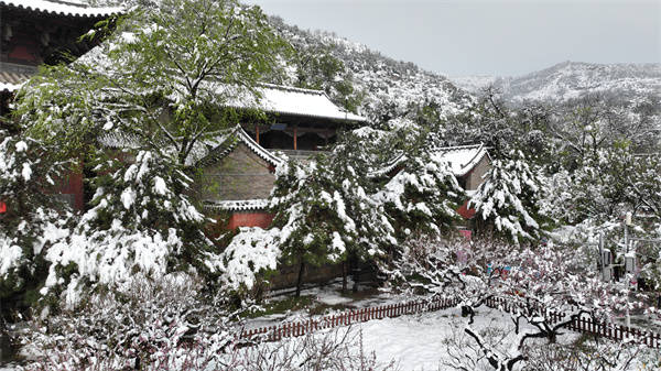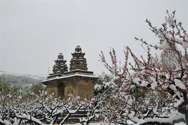 大雪還未完全消融,縱使萬木蕭瑟,依然殘雪壓青松,青松綴萬山,也難掩一片生機盎然。古樸莊重的國保開化寺、雋雅秀麗的連理塔經歷了歲月的滄桑,目睹了歷史的沉浮,在春雪映照下更顯肅靜莊嚴,遠眺可見山是一尊佛,佛是一座山,讓人油然心生敬意,感慨歲月更替,四季輪迴,生生不息。