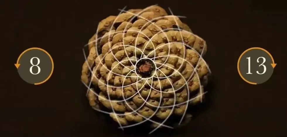 如上圖的松塔,逆時針旋轉的線條數是 8,而順時針旋轉的線條數是 13;