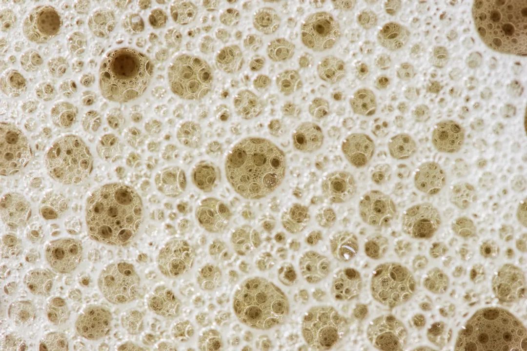 大氣泡旁邊散佈着小氣泡,小氣泡旁散佈着更小的氣泡。