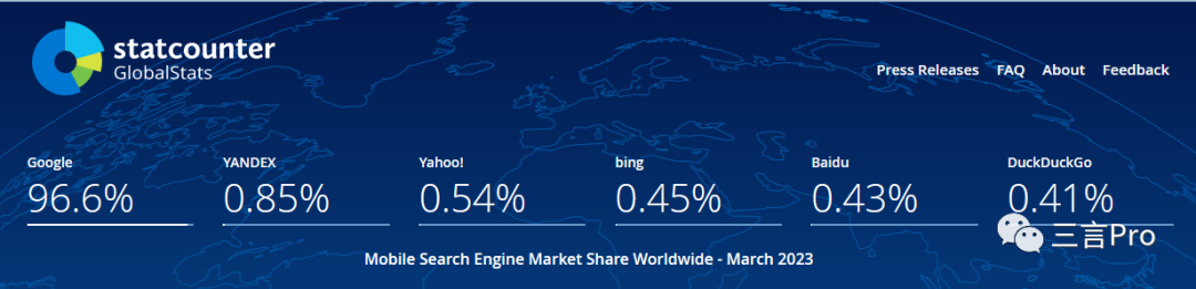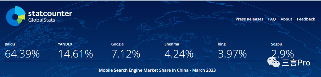三言搜索發現,很多媒體在報道搜索引擎相關市場份額數據時,都用了statcounter。
