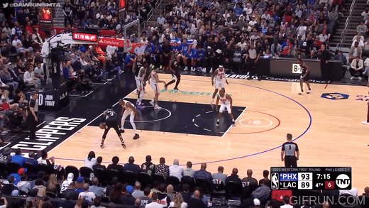 按説當時,快船也已筋疲力竭:他們沒有萊納德與喬治,無力再戰。莫里斯下場,科文頓終於出來,但立刻就被杜蘭特造了犯規。太陽領先4分。