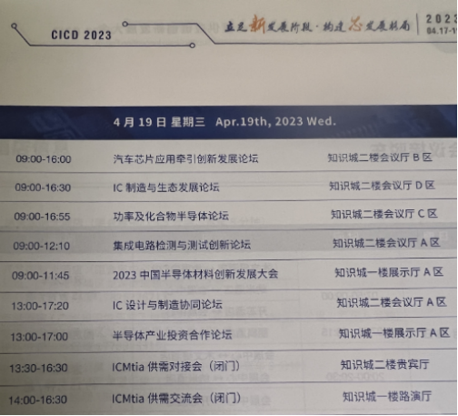 除一天的高峯論壇外,此次大會,於4月19日密集安排了汽車芯片應用牽引創新發展論壇、IC製造與生態發展論壇、功率及化合物半導體論壇、集成電路檢測與測試創新論壇、2023中國半導體材料創新發展大會、IC設計與製造協同論壇,半導體產業投資合作論壇,另有兩場閉門的供需對接會以及供需交流會。