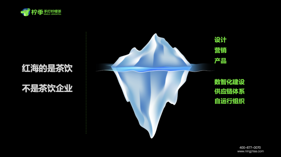 我一直説紅海的是茶飲,而不是茶飲企業。所謂的紅海,其實更多是基於C端而言。C端消費者看到的是什麼?看到的是設計,看到的是營銷,看到的是產品。所以當我們去看這些東西的時候,會發現很多的誤解。這個誤解在哪兒?