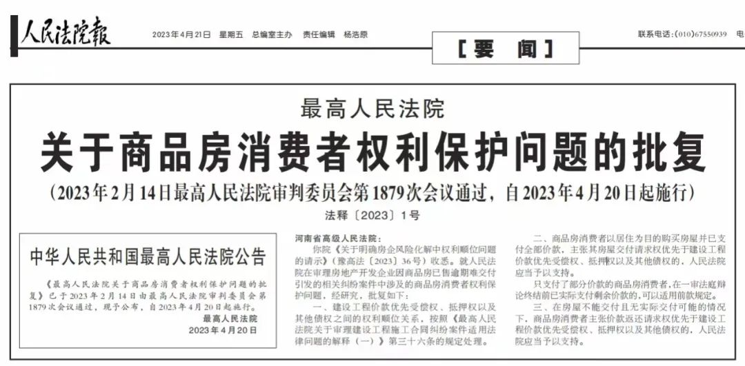 今天跟大家聊一個法律技術貼,跟買房有關。有買房需求的朋友,一定要關注。最高法院在前天發了一個批覆解釋,法律朋友圈紛紛轉發,具體內容見下圖。