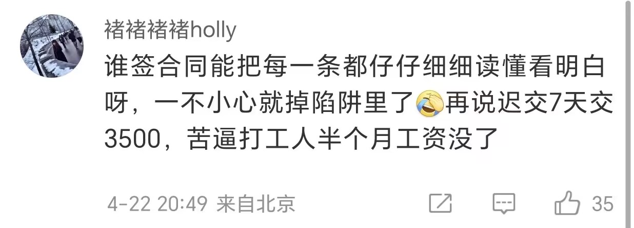 北京一女子晚交7天房租被扣3500元滯納金,這合法嗎?_風聞