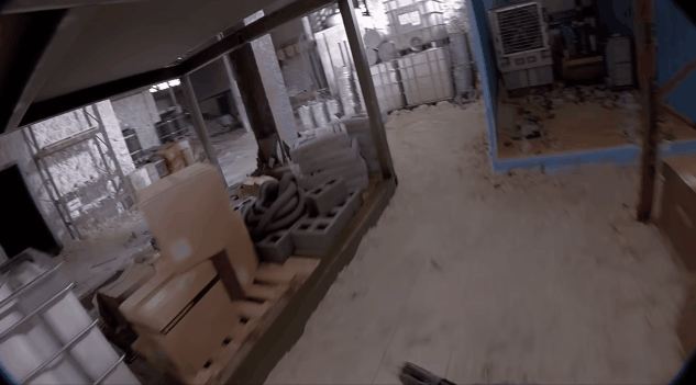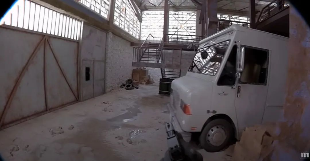 接着,畫面就進入到了一個燈光黑暗的廢棄建築,跟隨着遊戲鏡頭可以看到:廢墟里的地面材質、鋼板和光線都極其真實,作為一名普通玩家,真的很難相信,細節如此豐富的畫面是渲染出來的。